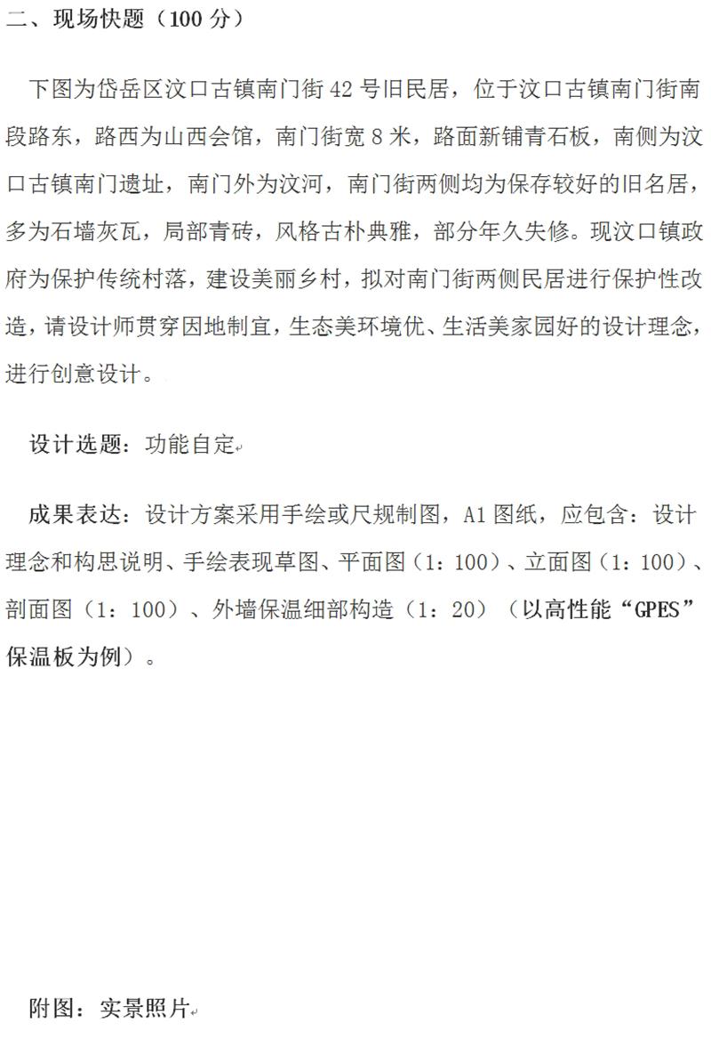 現(xiàn)場(chǎng)快題:建筑創(chuàng)意設(shè)計(jì)技能競(jìng)賽考試題